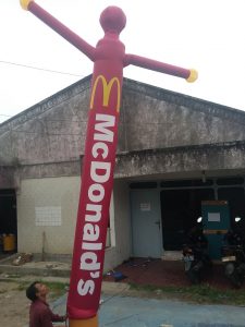 Sedangkan untuk media promosinya ada pada body atau tubuh balon gerbang. Balon ini memiliki ukuran cukup besar baik di sisi kanan, kiri maupun atas. Sehingga ada space atau ruang yang cukup luas untuk Anda gunakan sebagai area promosi.